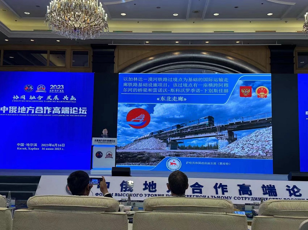薩哈(雅庫特)共和國政府副主席斯捷潘諾夫、阿穆爾州吸引投資署副署長赫姆拉·謝爾蓋及雅庫特鐵路股份公司執(zhí)行董事顧問阿布拉莫夫·阿列克謝先后在不同的專場活動中就漠河-加林達(dá)國際運輸走廊項目進行推介,重點闡述了項目的廣闊發(fā)展前景及實施計劃。